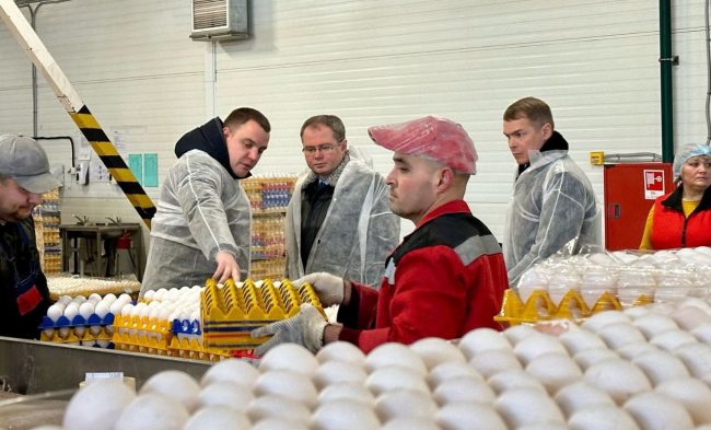 В ходе поездки в Кировский район прокурор области посетил одно из крупнейших предприятий АО «Птицефабрика Синявинская имени 60-летия Союза ССР», являющееся одним из крупнейших производителей яйца и занимающее более трети рынка в регионе, где пообщался с работниками данной организации. В ходе беседы принял от них жалобы и заявления, затрагивающие различные сферы жизни населения. Одна из работниц пожаловалась прокурору области на ненадлежащее состояние пищеблока в Кировской средней школе №1.