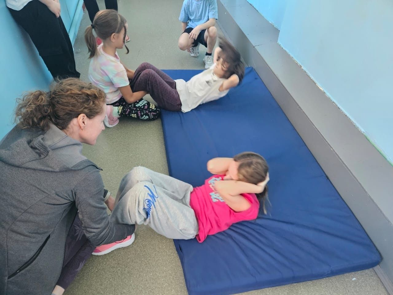 Всего участвовали около 30 школьников и их родители, у каждого участника была своя собственная возрастная ступень и соответствующие ей нормативы, проверяющие уровень физической подготовки в разных категориях: выносливость, силу, гибкость и метание